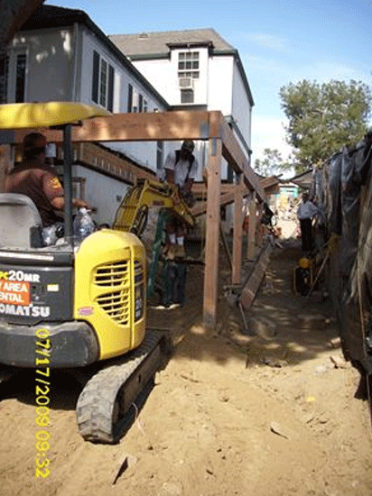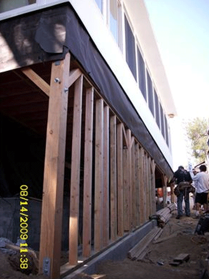 We started off with the foundation on 6/15/09 to include 20'+- Deep cassions on 10' centers and 18"x18" gradebeam connections. Existing foundation is reinforced with a 5'x60' retaining wall with a 32" spread footing wrapped at a 4' offset. The wall are convetional framed for a second story addition. Exterior finish and paint started in late Semptember and custom doors installed in early October.